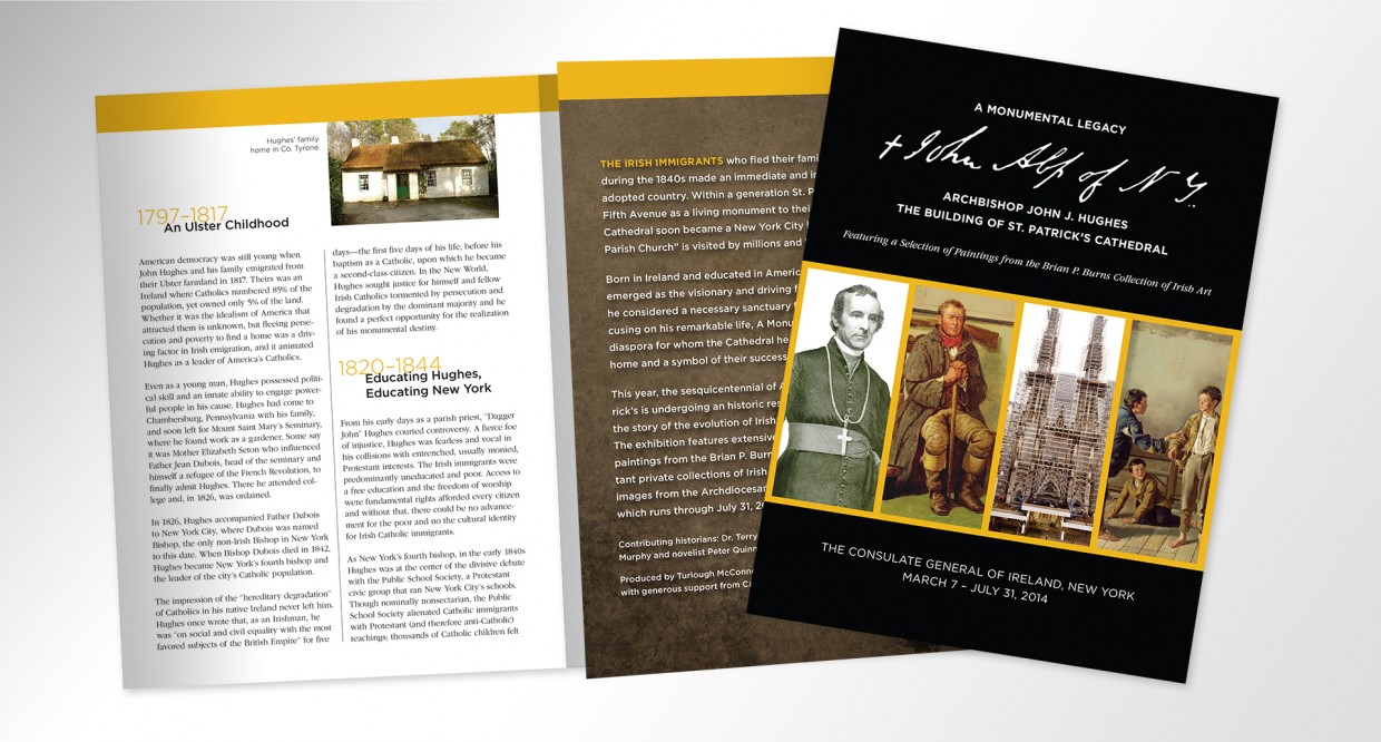In addition, we created all the promotional material associated with the exhibit: posters; brochures about both Archbishop Hughes and the Brian P. Burns Collection of paintings also on display; postcards; press kits; and a magazine special feature.