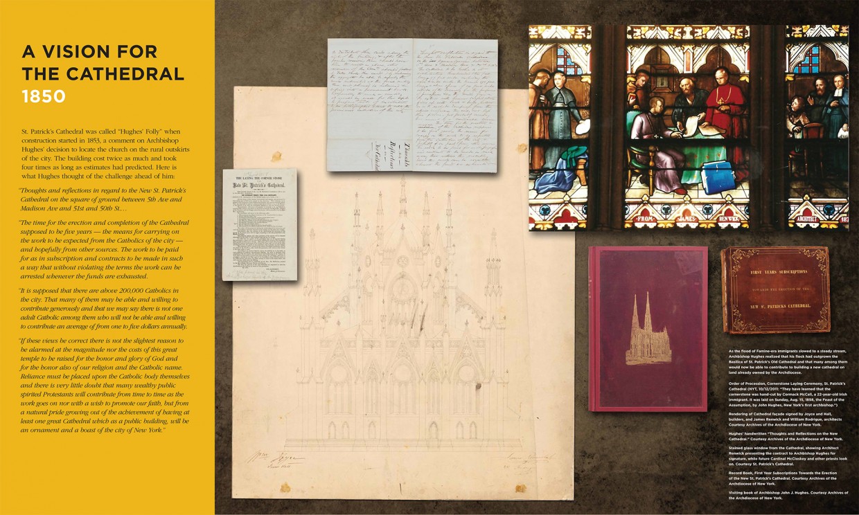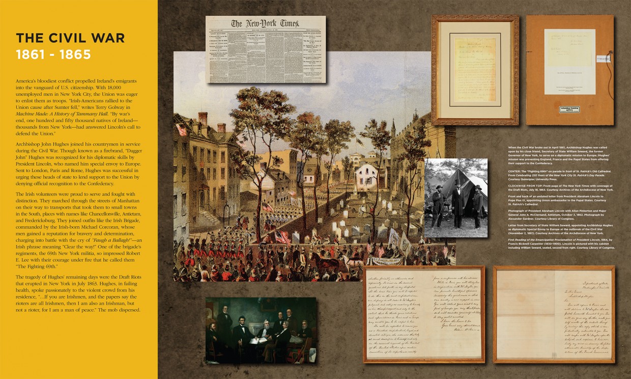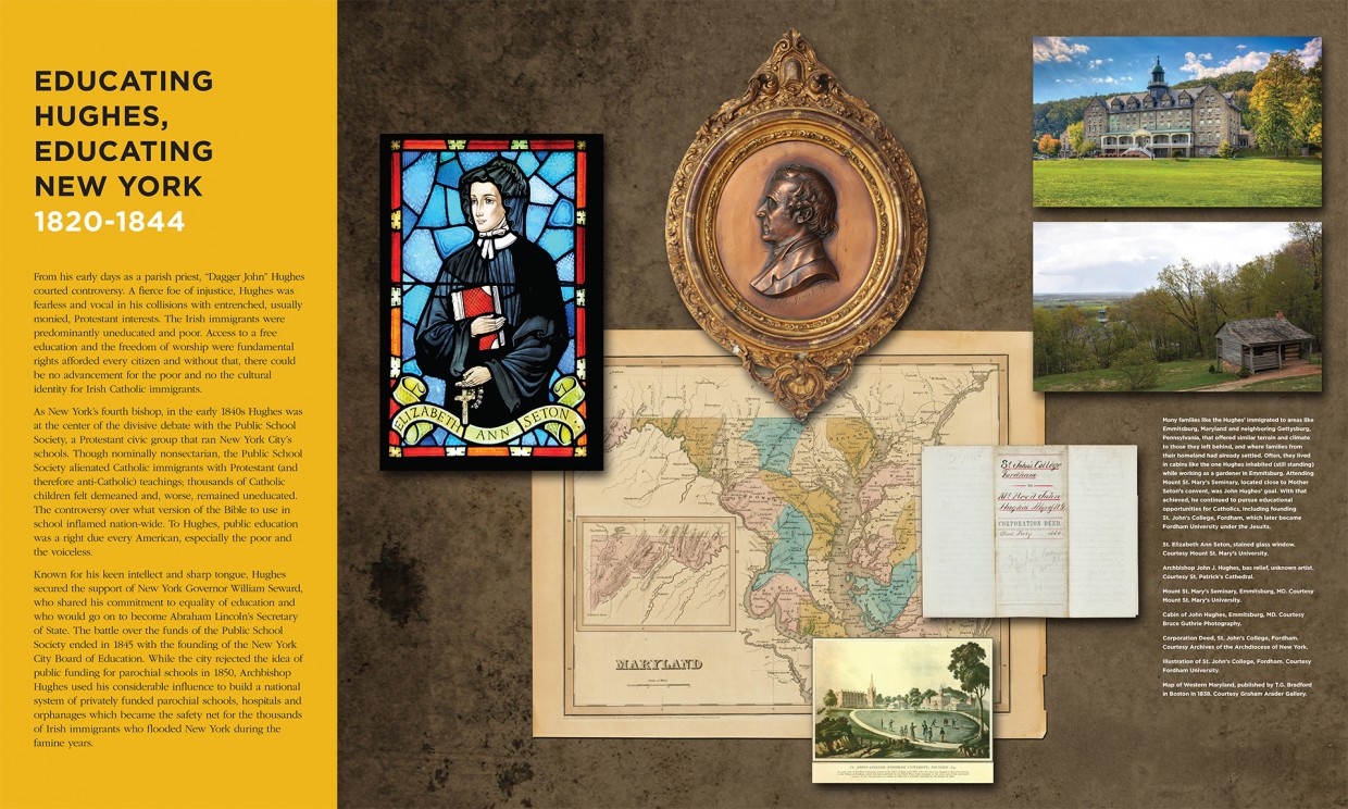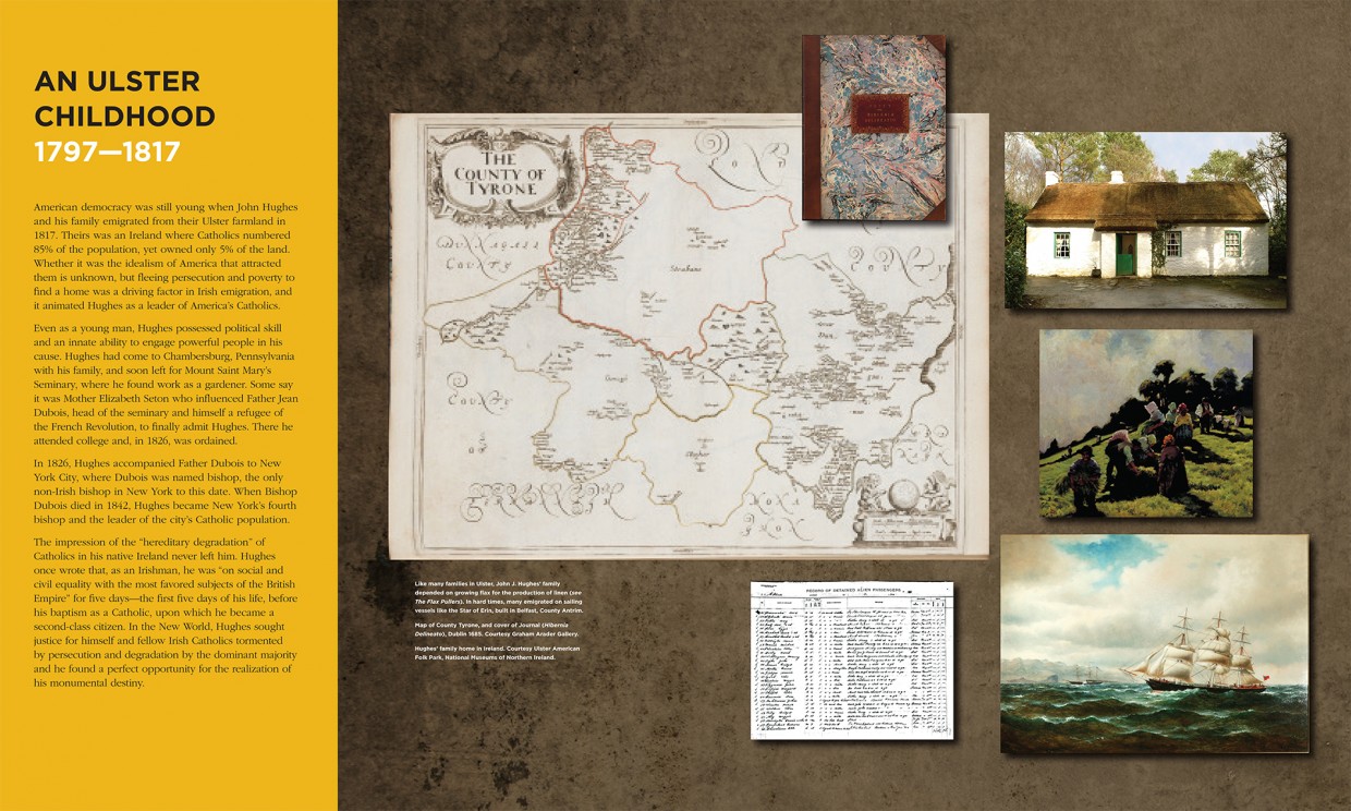 We were commissioned to create an original exhibit at the Consulate General of Ireland to tell the extraordinary story of Archbishop John J. Hughes, a towering 19th century Irish immigrant and the Irish Diaspora who built St. Patrick’s Cathedral on grounds that were, at the time, the rural outskirts of Manhattan.