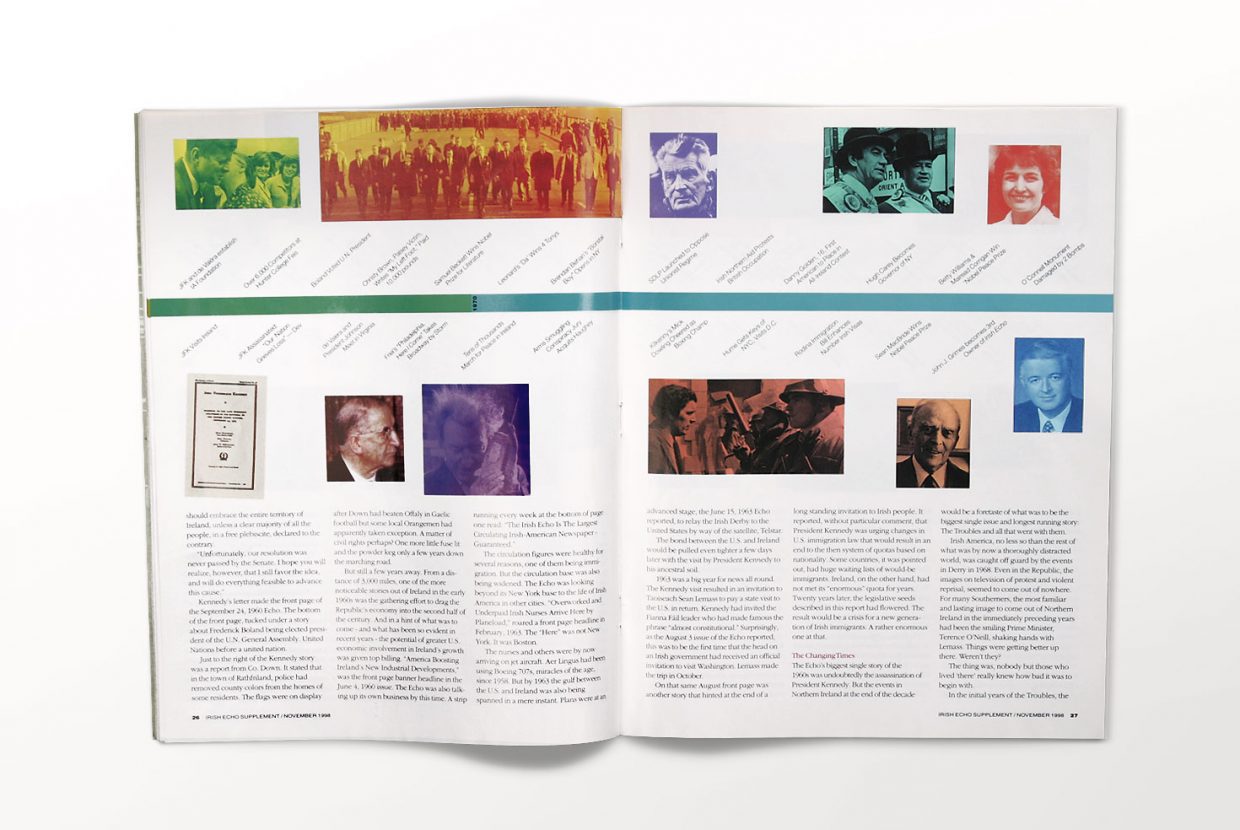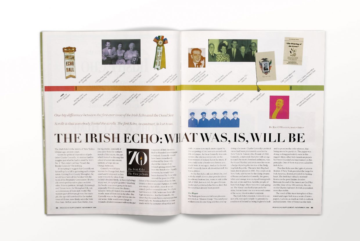 Andrew Patapis Design worked with Irish Echo publisher Claire Grimes to redesign a quarterly magazine to be inserted into their weekly newspaper. We worked as the art director for the first year and a half of the insert’s publication.